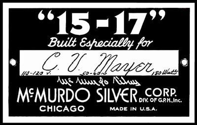 the 20-watt power output amplifier and two 5Z3 rectifiers. A new 15-inch