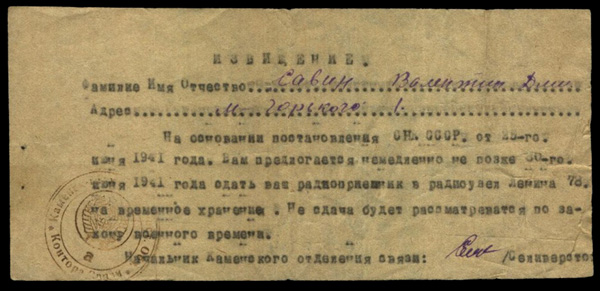 In accordance to decision of CHK CCCP from June 25, 1941,