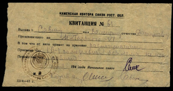 Issued to tovarisch.....Savin Valentin Dmitrievich